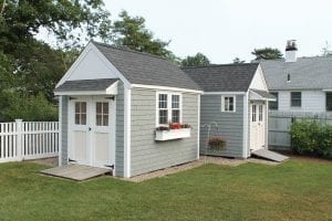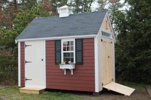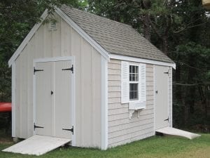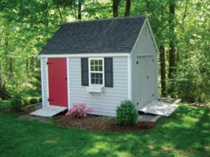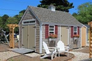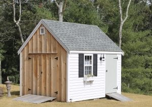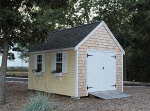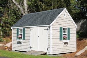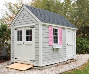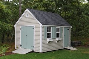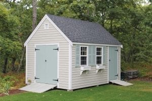 Reminiscent of traditional Cape Cod architecture, the Quivett Cape shed offers ample wall, shelving and overhead loft space. Its peaked roof is ideal for organizing the storage of seasonal items while maximizing floor space for bikes, mowers, equipment and more.